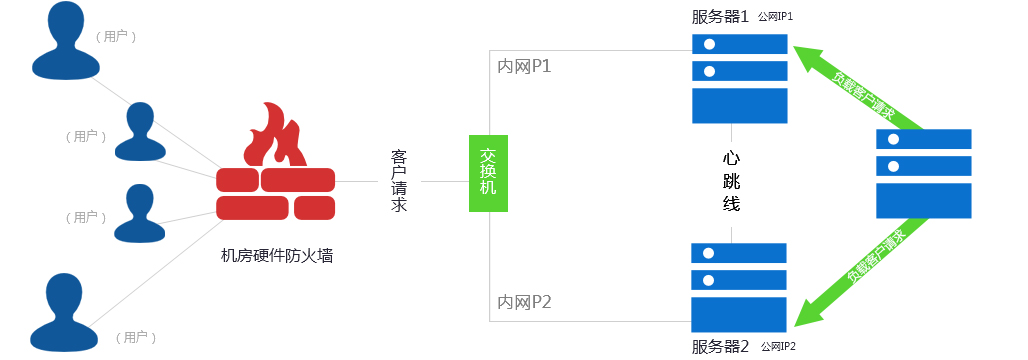 此方案主要應(yīng)用于WEB、數(shù)據(jù)庫等應(yīng)用服務(wù)器,服務(wù)器必須在同一機(jī)房且機(jī)器之間有心跳線連接