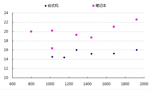 計算不同顯示器上的字號大小 用屏幕的物理寬度除以像素寬度,就可以得到每個像素的寬度。然后用指定的文字物理大小除以這個數,就可以得到在不同分辨率下所需的字號。例如要顯示4.32mm見方的文字,各分辨率下分別需要如下的字號(對筆記本和臺式機分別統計):![]() 不同分辨率下需要的字號 可以看出筆記本和臺式機的尺寸相差很大,為方便使用,使用各分辨率的主流尺寸或平均尺寸計算出指定字號在每個分辨率下所需的字號。(下圖去掉了基本只用在筆記本上的那些分辨率),以4.32mm、3.77mm、3.25mm為例(17寸1280*1024分辨率下的16、14和12號字):