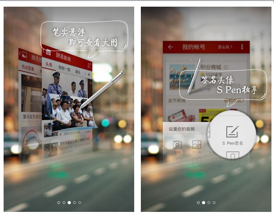 最能體現個性的部分是Note 3版新聞客戶端個人中心的頭像設置,用戶可以使用S Pen簽名功能,設置自己的手寫簽名照。下一版本還將支持用S Pen手寫跟帖,一筆在手,暢所欲言。