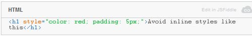 人們經(jīng)常將設(shè)計(jì)風(fēng)格放入線上的HTML里,但是這樣會(huì)把語(yǔ)義標(biāo)記和風(fēng)格搞混淆。分離關(guān)注點(diǎn)的同時(shí)還消除了緩存和重復(fù)使用CSS的機(jī)會(huì)。DRY原理在這里比較適用:如果你想把一個(gè)風(fēng)格使用在多個(gè)點(diǎn)上,那就需要事先聲明這個(gè)風(fēng)格是在一個(gè)單獨(dú)的樣式表里的。