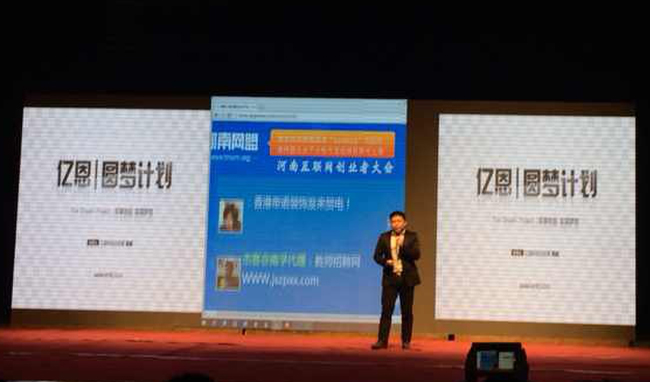 億恩科技總經理陶威作為河南首席互聯網分享嘉賓,與業內嘉賓和創業者分享微創業,從2014年開始億恩科技提供2000萬作為億恩圓夢基金,引爆全場,廣大互聯網創業者紛紛咨詢億恩圓夢計劃。