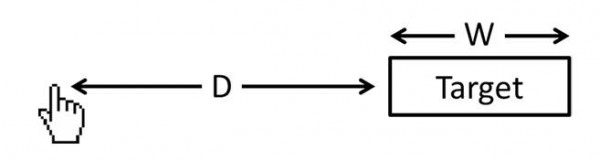 定律內(nèi)容:從一個起始位置移動到一個最終目標(biāo)所需的時間由兩個參數(shù)來決定,到目標(biāo)的距離和目標(biāo)的大小(上圖中的 D與 W),用數(shù)學(xué)公式表達為時間 T = a + b log2(D/W+1)。