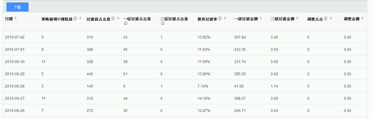 上圖為一賬戶中的7天的百度過濾點(diǎn)擊數(shù)據(jù)報(bào)告,我們可以看到,如果自己沒有進(jìn)行【百度商盾】中的IP策略屏蔽,我們就會浪費(fèi)很多的費(fèi)用,而這些費(fèi)用帶來的用戶都不是我們的目標(biāo)人群。