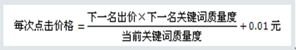 2.如果您的關鍵詞排在所有推廣結果的最后一名,或是唯一一個可以展現的推廣結果,則點擊價格為該關鍵詞的最低展現價格。請注意:質量度越高,該關鍵詞的最低展現價格越低。
