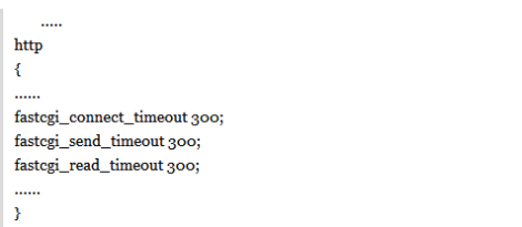 (2)、部分PHP程序的執行時間超過了Nginx的等待時間,可以適當增加nginx.conf配置文件中FastCGI的timeout時間。