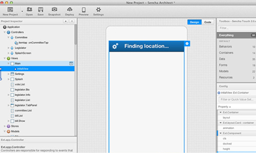 在開發移動和桌面應用的工具中,Sencha的定位是HTML5可視化應用開發。開發團隊可以在一個單一集成的環境中完成應用的設計、開發和部署。開發者還可以開發Sencha Touch2和Ext JS4 JavaScript應用,并能夠實時預覽。