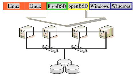 目前,VMware、Citrix、IBM和Microsoft都能提供完整的服務器虛擬解決方案,通過安裝部署,可以整合所有的PC服務器,然后根據業務系統的需求,安裝相應的操作系統環境。這些虛擬解決方案都可使人們在一臺物理機器上,安裝多個不同版本、不同類型的操作系統,獨立地對外提供服務。
